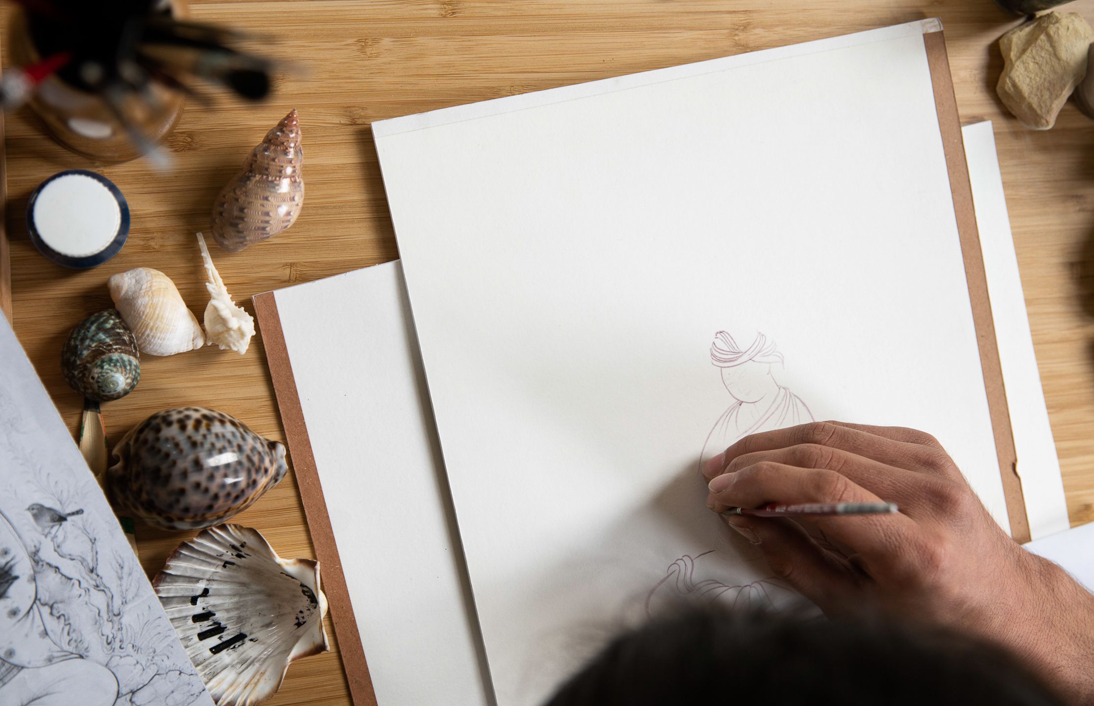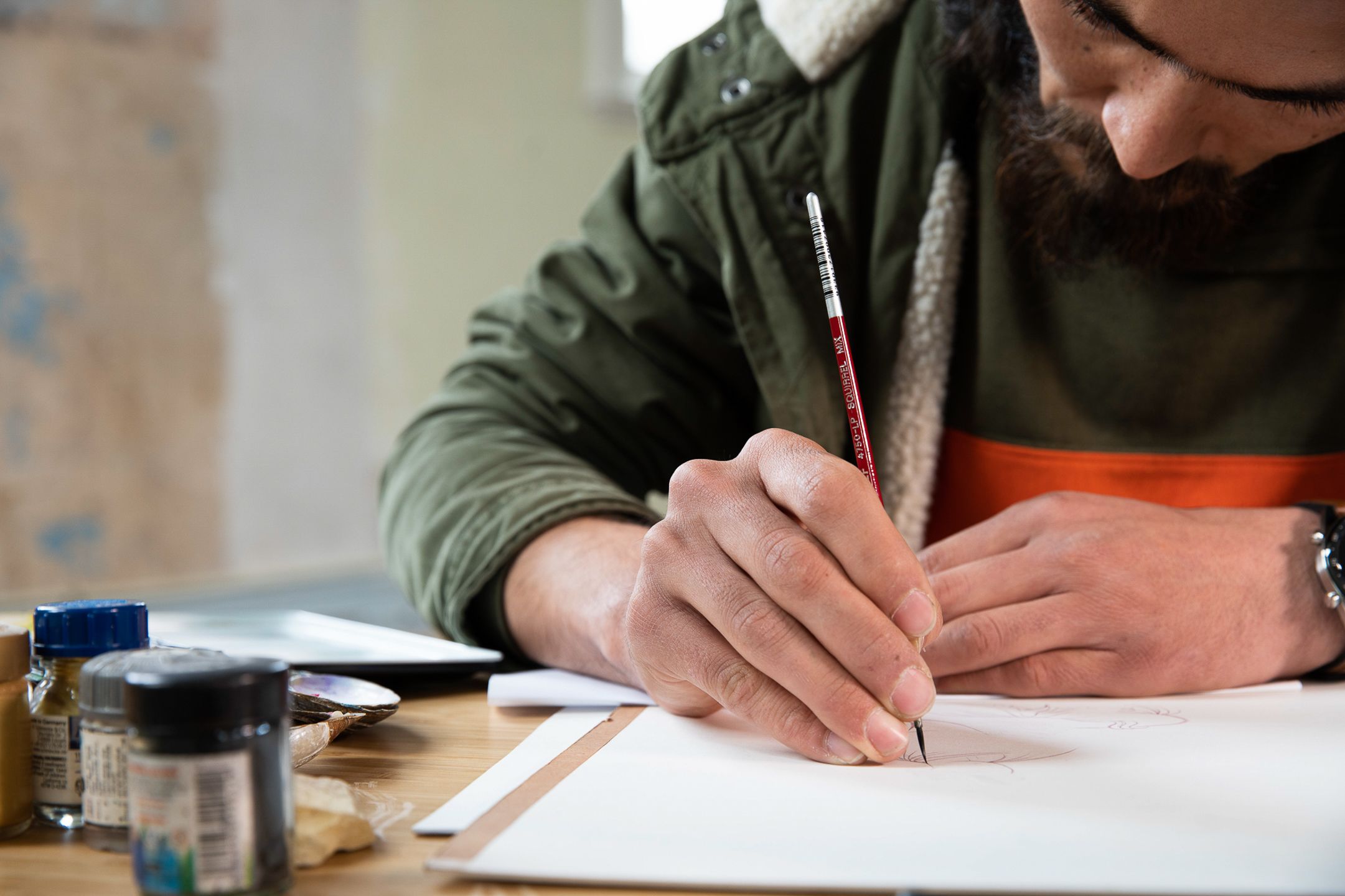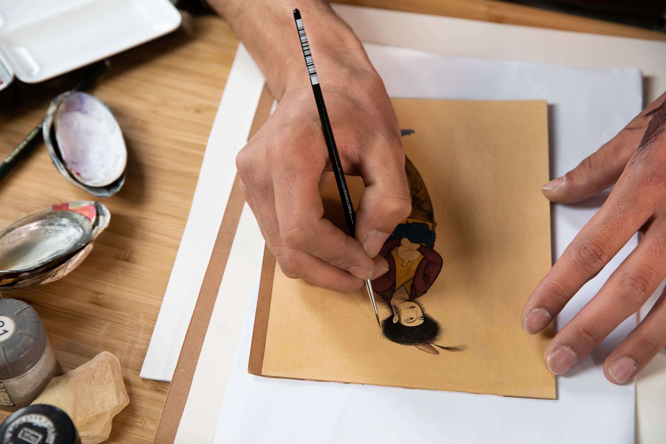 In an attempt to feel a connection to his homeland, Tahirian practices the traditional miniature technique that originated in Persia during the 13th century.